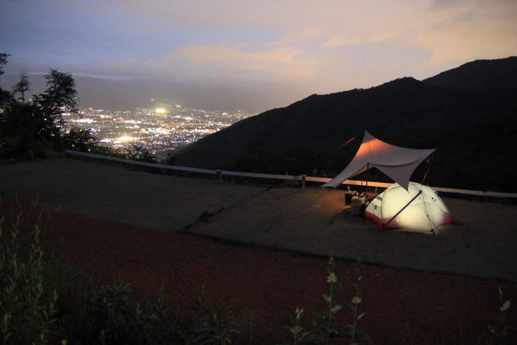 山梨の街を一望できる夜景とほったらかし温泉が歩ける距離にあること、新しくきれいな(でもやり過ぎではない)キャンプ場設備あたりがウリ。混んでるので金曜に行ったので、サイトは割と空いてましました。が、今回もいつも通り雨。やんでる時間もあったのでなんとか写真は撮れたのが唯一の救いかな。