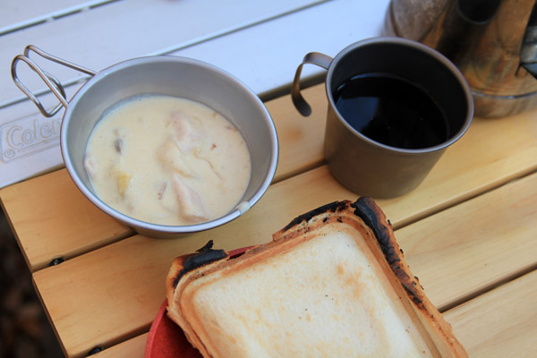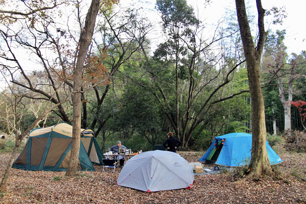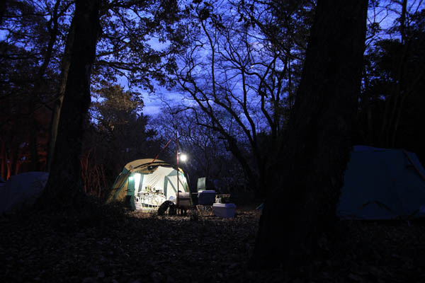 みんなソロだけど幕サイズはバラバラ。いつも通り、MSRのエリクサー2で行ったけど、先輩2人は、コールマンのスクリーンタープとかウインズライトのテントとか。今回は夕方から極寒だったので、宴会場?がスクリーンタープの中になったけど、これがもう快適そのもの。スクリーンタープって初めてだったけど、頭も高いし、快適。設営とか保管場所の問題とトレードオフの装備だよなーて。