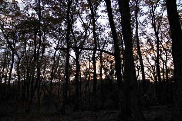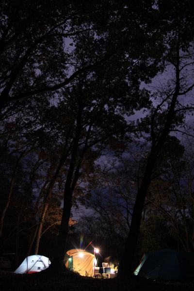 日が暮れるのは早い。そもそも針葉樹林の中だから、基本的には射し込む光のみで暗め。日が暮れると一気に暗くなるし、気温がグググって下がるのがわかる。