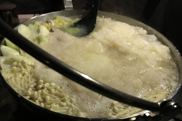 先輩作のみぞれ鍋を味わう。なんか具が色々足りなかったけど、味は最高。冬キャンプと鍋の組み合わせの最強たるや。