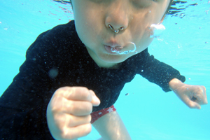 それにしても5歳の長男の水好きっぷりには驚くばかり。少し前からスイミングスクールに通い始めたこともあってさらに水と一体化していた。水の妖精。