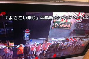 今回の旅における(俺の)メイン、よさこい。一度も体験せずに高知好きとは言えない。そんなわけで本祭初日昼間から市内へ。とにかく熱気と迫力がすごい。何より気温と日差しがすごい。いろいろな”熱さ”に圧倒された。生でみると踊ってみたいという人が多数現れるのもよく分かる。自分もそういう感覚になった。意外だけど、でもそういうパワーはあると思う。