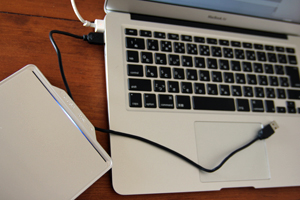 最近ではそうそうDVDドライブの出番があるわけではないけれど、音楽読み込んだり古いソフト入れたりメディアで預かったデータを読み込むときなど、まぁ出番がないわけではない。MBAはドライブがついていないので外付けが必要。純正のApple USB SuperDriveを買えばいい話なんだが、6800円って価格は上の用途から考えると意外にお高い。