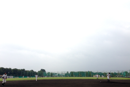 6月末に初参加したときは、いきなり公式戦(夏の大会)だったわけだけど、それ以来チーム練習が開催されないまま、今日2回目の参加。やっぱり公式戦(秋の大会)。今回も前回同様、最終回に代打で立たせてもらったけれど、バッティングって難しい。ファウル2回がやっと。んー、打つ練習してみないとなー。まぁ、それでも2回とも新鮮な発見がたくさんあって、とりあえず参加するだけでもかなり楽しい。