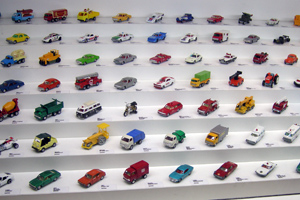 が、中に入ると涼しい。会場が広くなったし、場所が都心じゃなくなったし、平日だし、ってことで、結構空いてた。平日最高。明日からの土日ラッシュの予行練習Dayってことね。池袋のとき、子供はともかく大人が楽しむのは無理だったけど、今回は40年の歴史ってことで古いトミカが勢揃い。