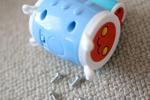 休日の昼食やどこかへ車で出かけるときなどにマックをよく利用するが、そのせいもあっていつの間にかハッピーセットのおもちゃがかなりの数になってきまして。大半は捨ててもいいかなと思う物だけど、中にはなかなか良い作りだったり、子供たちが気に入った物などもあるわけです。なんだけど、やはり暫くするとどうしても電池切れとなり電池の交換が必要になり、いざ分解しようとしてハッと気付くのが、見たことの無いネジの形状。