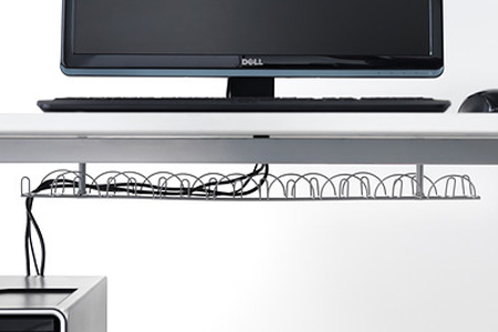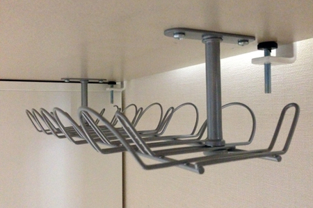 ところで、IKEAに行ったついでにもう一つ買ってきたオプション品が、ケーブルをすっきりと整理するために天板の裏に付けるケーブルオーガナイザー。