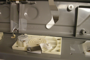 左の扉にはある。買った部品が正しかったことがこれで分かったので、そのまま交換へ。まずはじけたバネの欠片を回収。