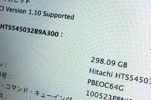 そんなこんなで(途中トラブルがあったんだけど)ディスク交換終了し、Leopardのインストールディスクから起動し、OSインストール前にシステムプロファイラから容量を確認し無事を確認。ホッと一息。