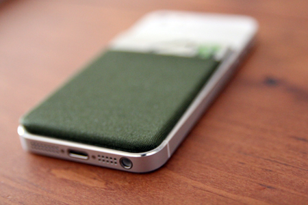しっかりした3Mのシールで裏面に貼るだけ。幅はiPhone5にぴったり。色はカーキにした。カリモクみたいな感じ。好きな色。
