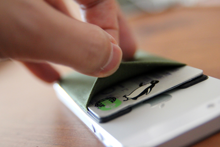 とはいっても、革製とかのパカって開けて使うようなiPhoneケースはちょっと違うな、て感じで。そんなときに見つけたのがSinji Pouch Basic2。結構前からあるみたいだけど、元々”なんちゃってお財布携帯”みたいにする発想が「ないわー」て思っていたこともあって気にとめたことがなかったプロダクト。そんな「ないわー」を今回は変えてみようかと。物としてはすごく単純な作りだけど、だからこそ良いなー、と。とにかく全然邪魔にならない。